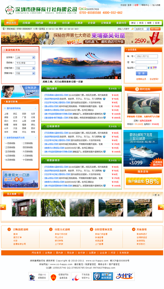 中國康輝旅行社有限責任公司以“網(wǎng)絡(luò )化”、“規;”、“品牌化”為發(fā)展目標,致力于“國內成網(wǎng)、國外成鏈”的建設。日臻完善的全國網(wǎng)絡(luò )和垂直管理模式形成康輝集團在全國旅行社行業(yè)獨特的優(yōu)勢,遍布全國及海外的網(wǎng)絡(luò )及2300余名優(yōu)秀員工真誠為海內外旅游者提供全方位的優(yōu)質(zhì)服務(wù)。北起哈爾濱,南至深圳、海南,東起上海,西至甘肅、新疆, “中國康輝”在全國各大城市設有70多家垂直管理的分公司(分社),其中1999及2000年度就有8個(gè)分社進(jìn)入全國國際旅行社百強行列。2001及2002年,“中國康輝”在國家旅游局 “全國國際旅行社百強企業(yè)”的業(yè)績(jì)排名已列三甲,企業(yè)實(shí)力不斷發(fā)展壯大!