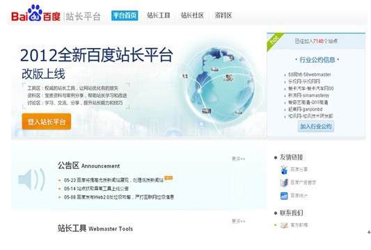 在剛剛結束的2012百度聯(lián)盟峰會(huì )上,百度正式宣布百度站長(cháng)平臺(http://zhanzhang.baidu.com/)改版上線(xiàn)。同時(shí),以規范網(wǎng)站運營(yíng)、建立綠色健康的互聯(lián)網(wǎng)生態(tài)環(huán)境為目標,百度聯(lián)盟和聯(lián)合行業(yè)代表共同發(fā)布了《互聯(lián)網(wǎng)行業(yè)網(wǎng)站運營(yíng)公約》。