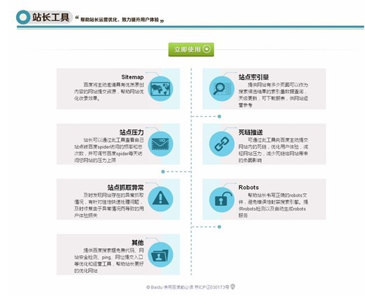 站長(cháng)可以通過(guò)工具區提供的死鏈推送、站點(diǎn)索引量查詢(xún)、站點(diǎn)抓取報錯查詢(xún)、robots工具、站點(diǎn)壓力反饋和網(wǎng)站安全監測等功能,減輕網(wǎng)站服務(wù)器壓力,提升網(wǎng)頁(yè)抓取效率和質(zhì)量,減少網(wǎng)站安全隱患,從而實(shí)現網(wǎng)站的精細化運營(yíng)。資料區提供了搜索優(yōu)化案例、工具使用說(shuō)明、網(wǎng)站運營(yíng)經(jīng)驗文檔,幫助站長(cháng)汲取網(wǎng)站運營(yíng)經(jīng)驗、夯實(shí)理論基礎;站長(cháng)社區的則是站長(cháng)間溝通和分享的平臺,既會(huì )定期組織交流活動(dòng)和分享討論,,有利于站長(cháng)們取長(cháng)補短提升網(wǎng)站運作技巧,解決站長(cháng)面臨的典型問(wèn)題。