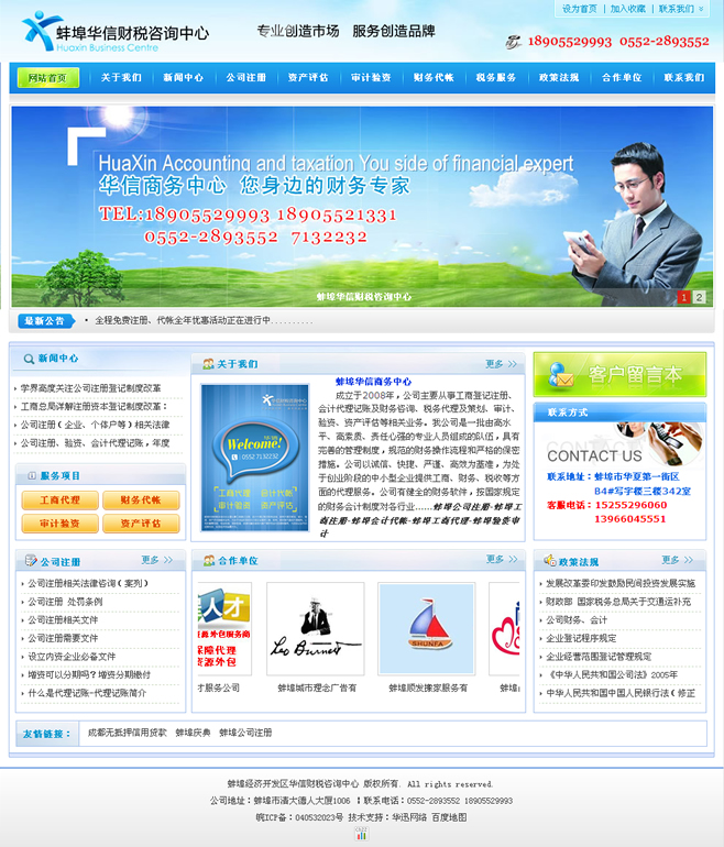 核心提示:蚌埠華信商務(wù)中心 成立于2008年,公司主要從事工商登記注冊、會(huì )計代理記賬及財務(wù)咨詢(xún)、稅務(wù)代理及策劃、審計、驗資、資產(chǎn)評估等相關(guān)業(yè)務(wù)。我公司是一批由高水平、高素質(zhì)、責任心強的專(zhuān)業(yè)人員組成的隊伍,具有完善的管理制度,規范的財務(wù)操作流程和嚴格的保密