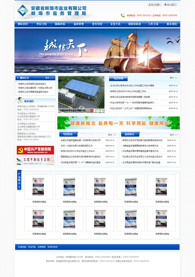 多年來(lái),蚌埠鹽業(yè)認真貫徹落實(shí)國家《食鹽專(zhuān)營(yíng)辦法》、《食鹽加碘消除碘缺乏危害管理條例》,始終以食鹽市場(chǎng)安全穩定為天職,忠實(shí)履職,恪盡職守。一方面對全市鹽業(yè)市場(chǎng)進(jìn)行鹽政監管,嚴厲打擊鹽業(yè)違法犯罪,全力維護食鹽市場(chǎng)安全穩定;另一方面負責組織開(kāi)展食鹽專(zhuān)營(yíng),致力為消費者提供安全、優(yōu)質(zhì)、放心的加碘食鹽,確保全市371萬(wàn)人口的食鹽供應。與此同時(shí),蚌埠鹽業(yè)主動(dòng)適應市場(chǎng)需要,積極拓展非鹽經(jīng)營(yíng),在發(fā)展的道路上不斷深化改革,自主創(chuàng )新,產(chǎn)業(yè)結構轉型邁出堅實(shí)步伐,全區總資產(chǎn)已近8000萬(wàn)元,現有經(jīng)營(yíng)倉儲面積約1.5萬(wàn)平米,在建倉庫1萬(wàn)余平米。2014年實(shí)現銷(xiāo)售收入14762.69萬(wàn)元,其中食鹽銷(xiāo)售4967.40萬(wàn)元,非鹽銷(xiāo)售9795.20萬(wàn)元、實(shí)現利稅1124.52萬(wàn)元,經(jīng)濟社會(huì )效益居全省同行領(lǐng)先。先后榮獲全省鹽業(yè)系統先進(jìn)單位五連冠、安徽省勞動(dòng)保障誠信示范企業(yè)、安徽省衛生先進(jìn)單位、檔案管理考核安徽省一級單位、蚌埠市A級納稅信用單位、蚌埠市第十四屆文明單位等多項榮譽(yù)稱(chēng)號。
